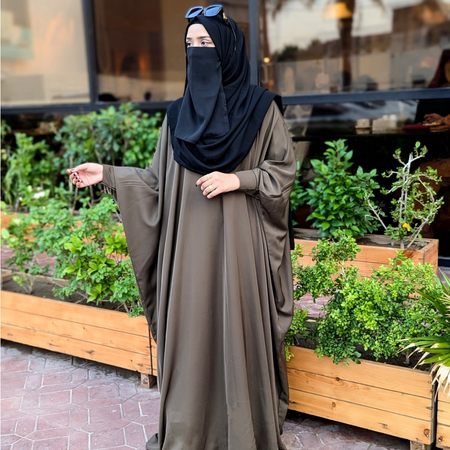 Elegant Turkish Fabric Abaya Brown with Embroidered Bows