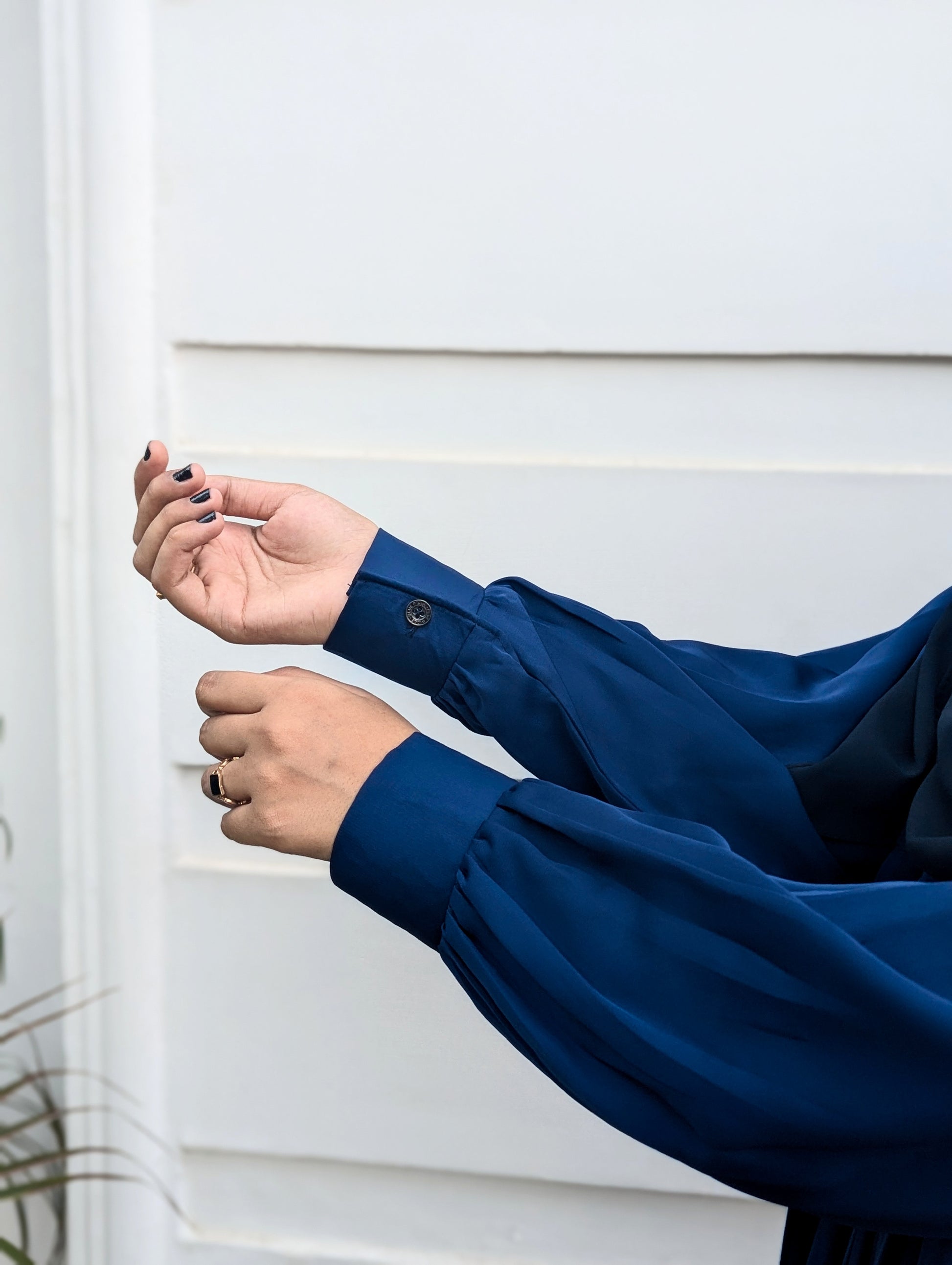 The deep midnight blue shade adds a refined touch, making it an ideal choice for both casual outings and formal occasions. Crafted from high-quality, breathable fabric, this abaya ensures all-day comfort while maintaining its elegant drape.