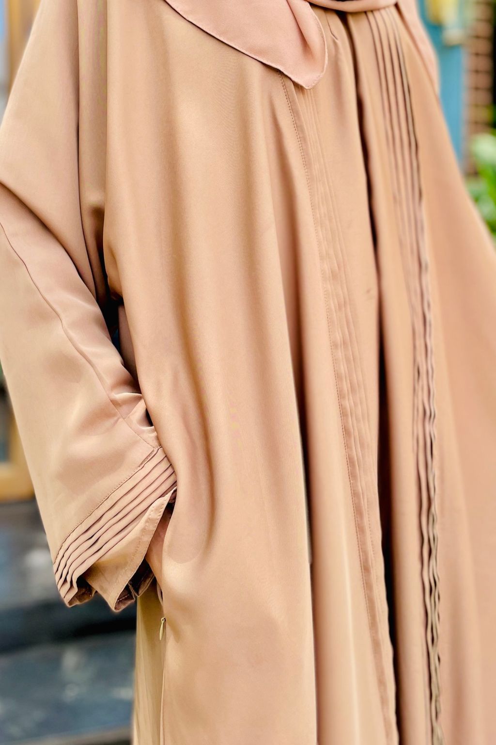 Functional Side Pockets: Equipped with two side zipper pockets, this abaya merges style with practicality, providing a convenient space for your essentials without compromising on the overall aesthetic.