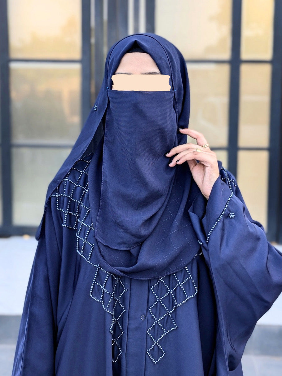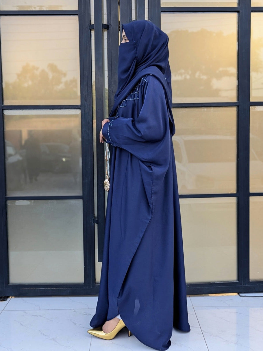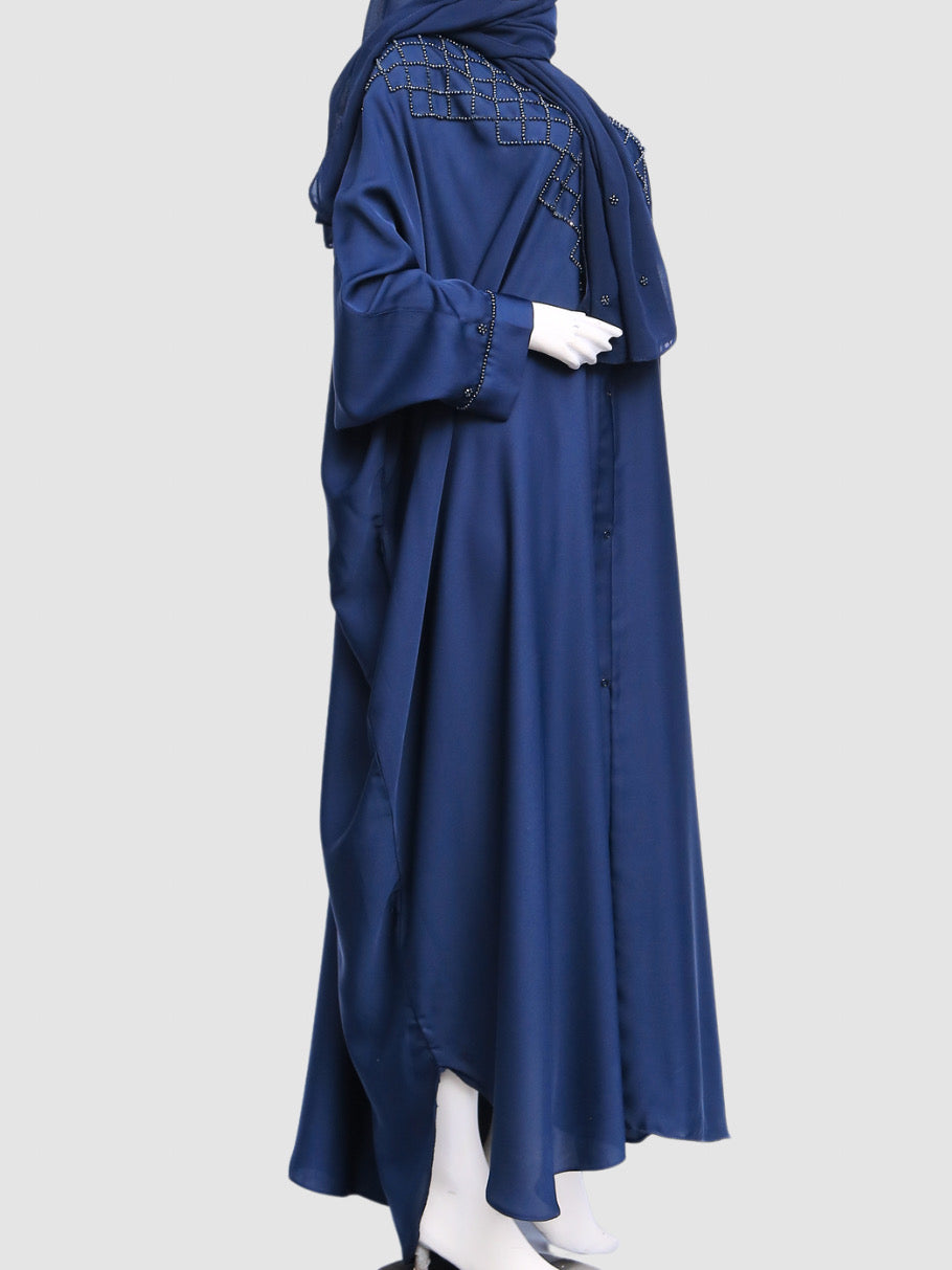 Introducing the sapphire blue Color Crimson Kaftan Abaya, the epitome of modesty and elegance.